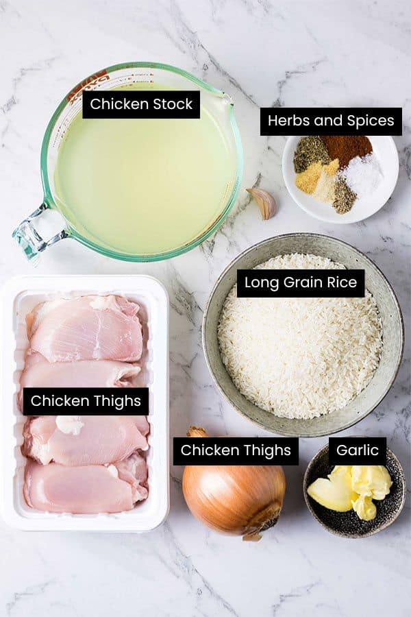 At its simplest, the recipe requires you to sweat onions and garlic in butter, throw in some rice and chicken stock, then pop a few spice-rubbed chicken thighs on top and get the whole lot into the oven.