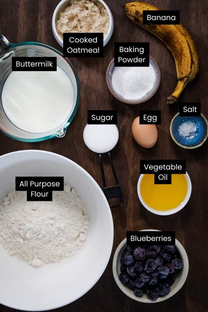 - In another bowl, mash the banana with a fork. Put the egg, mashed banana, oatmeal, buttermilk and oil into a jug or bowl and whisk to combine.1 egg, 1 banana, 1 cup oatmeal, ½ cup buttermilk, 1/3 cup vegetable oil