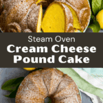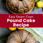 I’ve gotten great results baking this lemon cream cheese pound cake in both a regular oven and a combi steam oven, so I’m giving both methods today. Combi steam makes the baking a little faster but the texture is lovely and soft with a burnished golden outside either way.