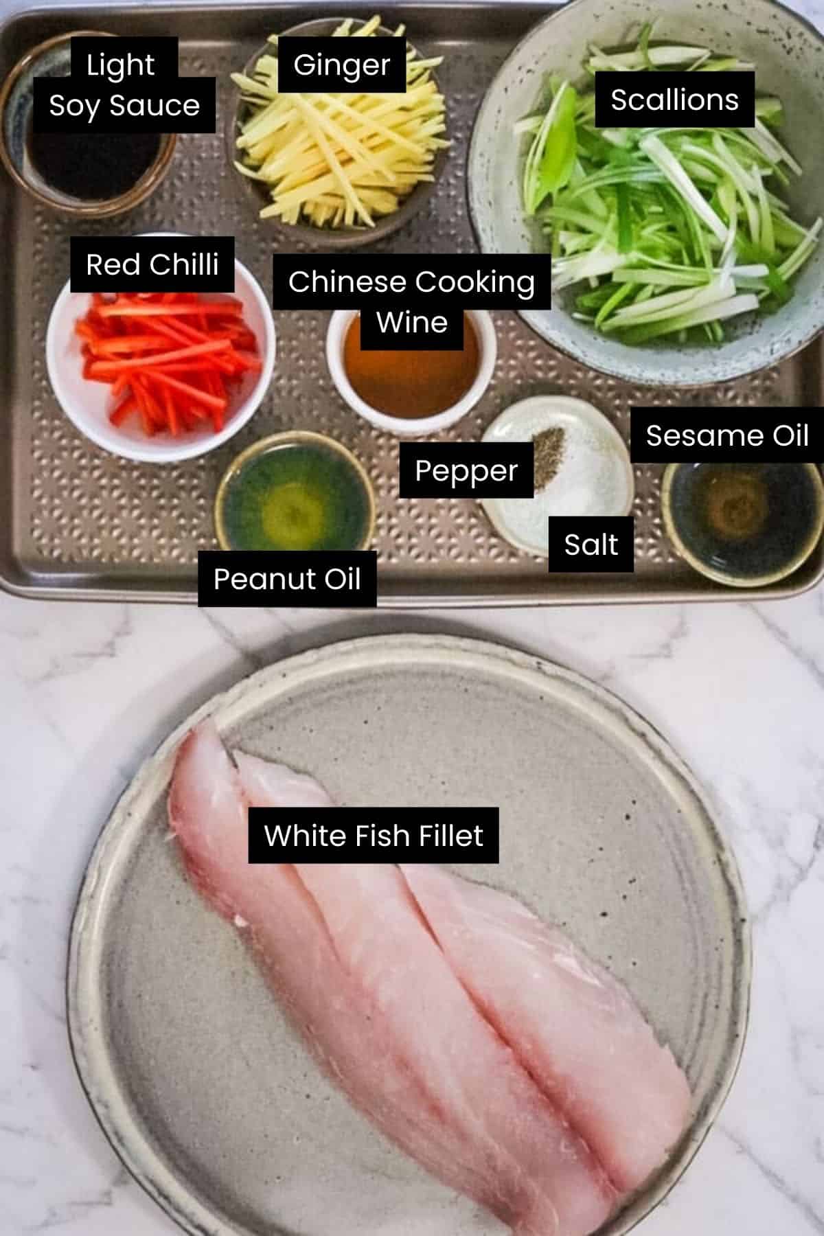 - If you're steaming in a steam oven, place the fish on a lightweight stainless steel tray in a single layer. For a steamer basket, place the fish onto a heatproof plate which fits inside a bamboo or basket steamer. Mix the Chinese cooking wine, salt and pepper in a small bowl and drizzle the top of the fish with the mixture.4 5oz white fish fillets, 1 Tbsp Chinese cooking wine, 1/2 tsp fine salt, 1/2 tsp black pepper