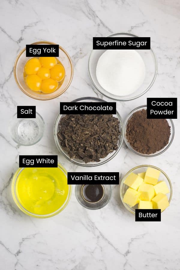 - Using a whisk, mix the egg yolks into the cooled chocolate and butter. Add the sieved cocoa powder and salt and whisk well to combine, then whisk in the vanilla.6 eggs, 2/3 cup Dutch process cocoa powder, 1/2 tsp salt, 1 tsp vanilla extract