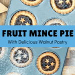 Fruit mince pies are a British/Australian Christmas staple, but if you’re in another part of the world I hope that won’t stop you trying them out. They represent just about all the things I love in festive eating – buttery richness, spices and fruit spiked with alcohol. I’ve given these ones a bit of a revamp by way of walnut pastry instead of regular sweet shortcrust, and I absolutely love them, both for serving to holiday guests and for gift giving.