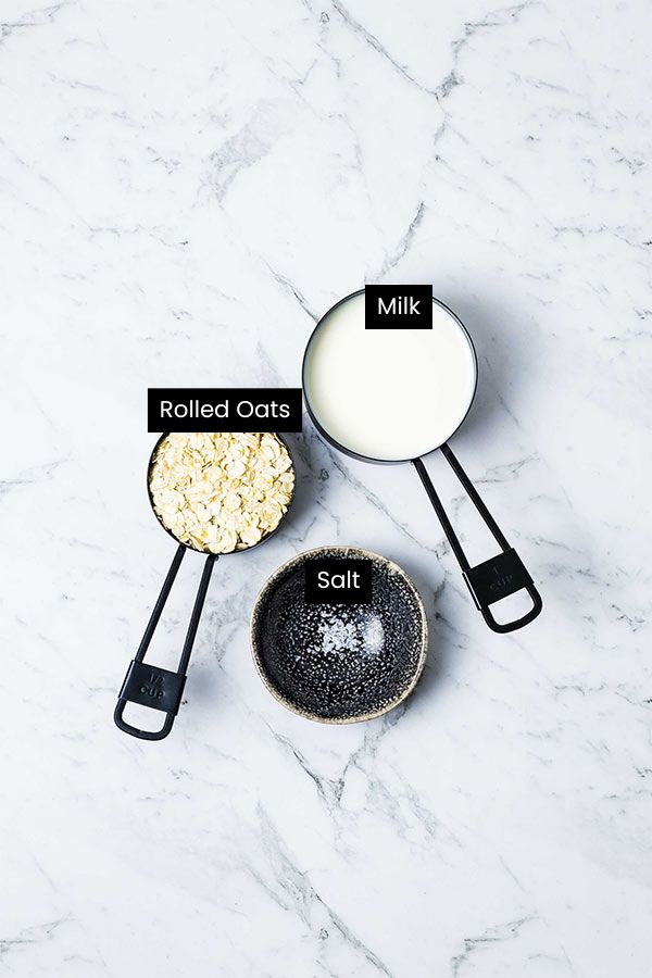 Essentially, oatmeal or porridge is made with rolled oats, water or milk (or both, if you prefer) and salt.