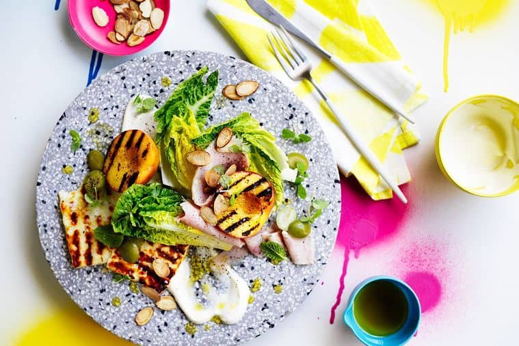 This recipe is perfect for combi steam cooks; skip the grilling of the peaches and haloumi, and blast them in a hot combi steam oven instead! You won’t get the pretty grill marks but what they lose in appearance will be more than made up for in ease and taste. Set your oven to Combi Steam, 400°F/200°C, 30% humidity and cook the cheese and peaches on a tray together, before assembling the rest of the salad. The recipe calls for ham; I don’t bother, making this a gorgeous vegetarian side instead.