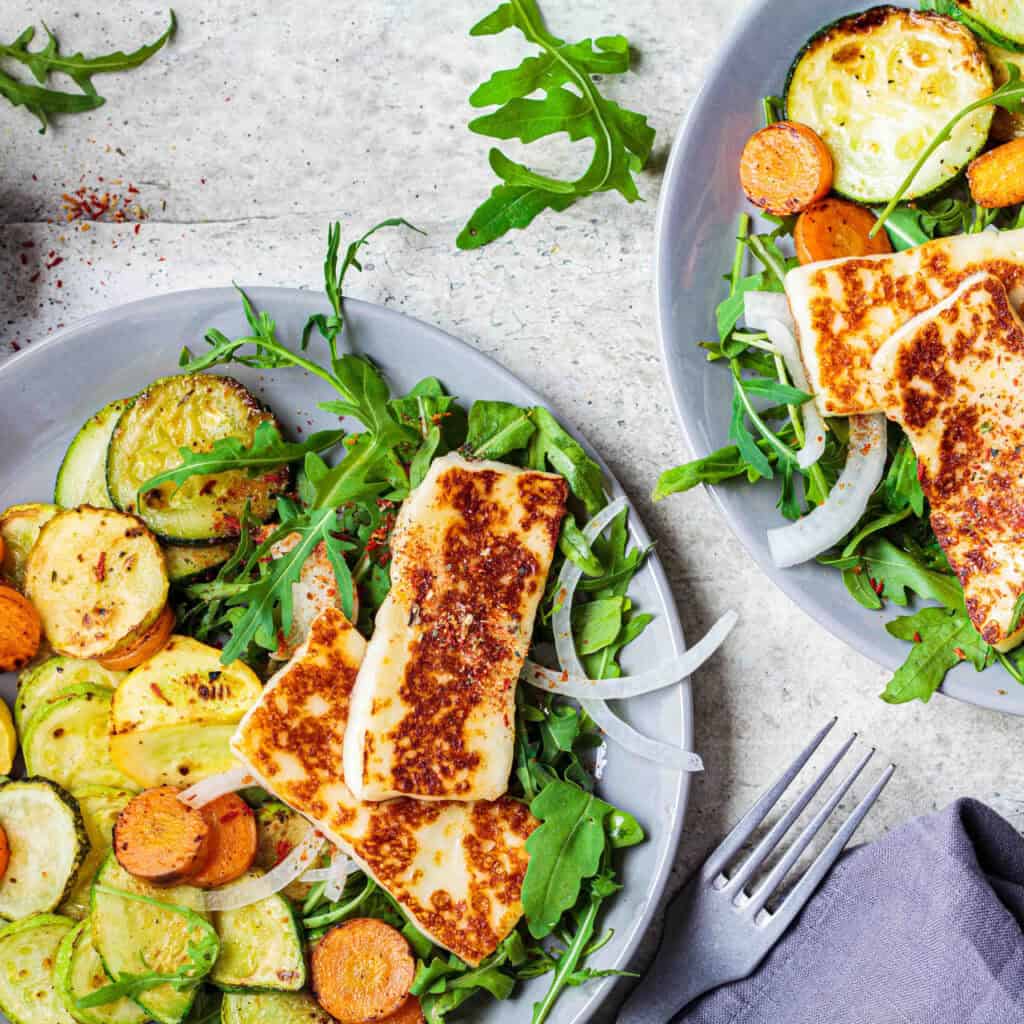 Steamed-and-Grilled Vegetable and Halloumi Cheese Platter