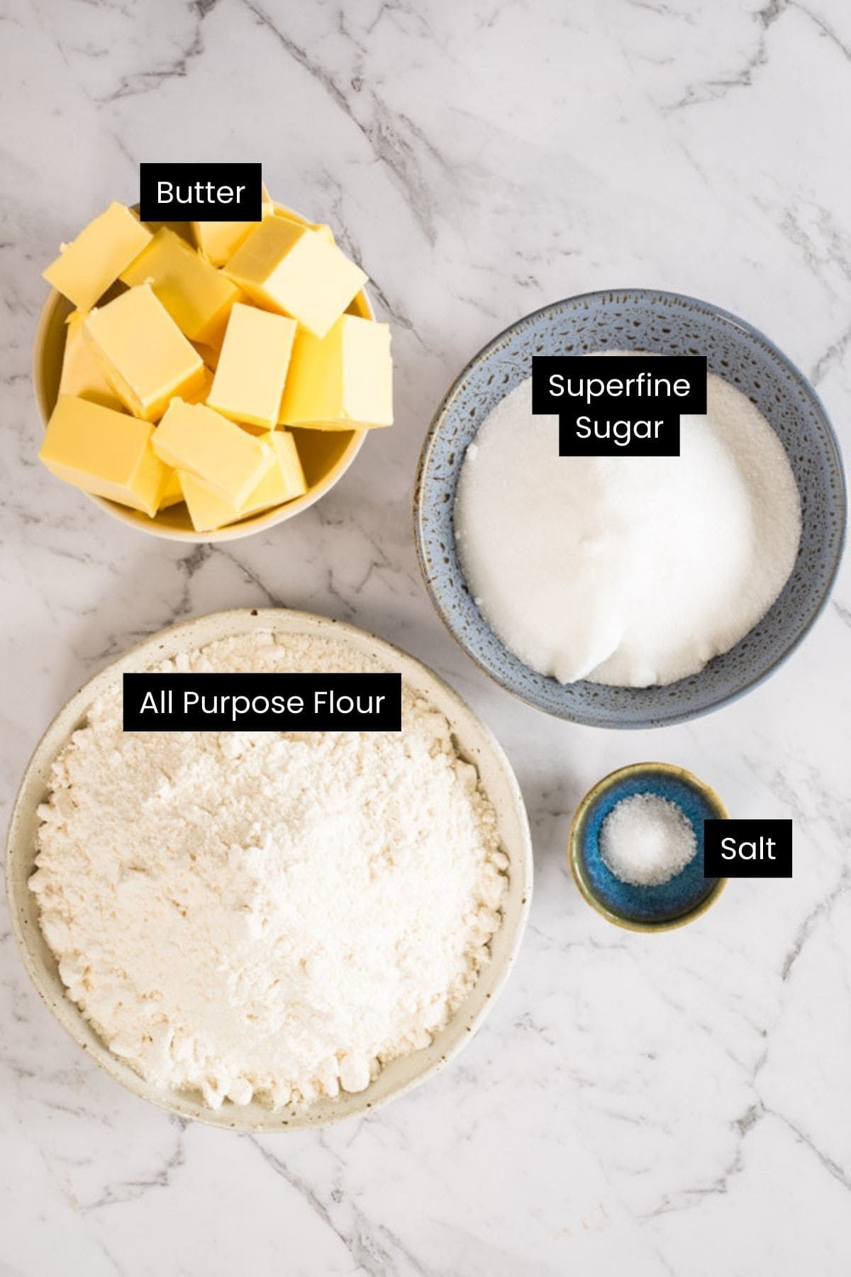 - Put the butter, sugar and salt into the bowl of a stand mixer fitted with the paddle attachment and beat on medium speed until it's soft and creamy (you don't need to beat the butter until it's really fluffy, as this will make your cookies spread and be too delicate). The time this takes can vary depending on how soft your butter is, and how strong your mixer is. It takes 2-3 minutes in my KitchenAid.1 cup unsalted butter, 3/4 cup superfine sugar, ½ tsp fine salt