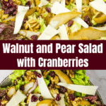 Although it suits just about any season, this salad feels particularly festive thanks to the luxurious quantity of walnuts and the bright and tart cranberries scattered throughout. I also love the combination of roasted pears with turkey or ham, so it makes a fine side to Christmas dinner.