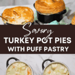 If you wanted to go all out making traditional turkey pot pies with puff pastry, you could cook turkey, cook the vegetables, and make your own puff pastry. But who has time for that?!