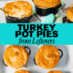 In the recipe card at the bottom of this post, I give preparation and cooking directions for individual AND large turkey pot pies, so take your pick.