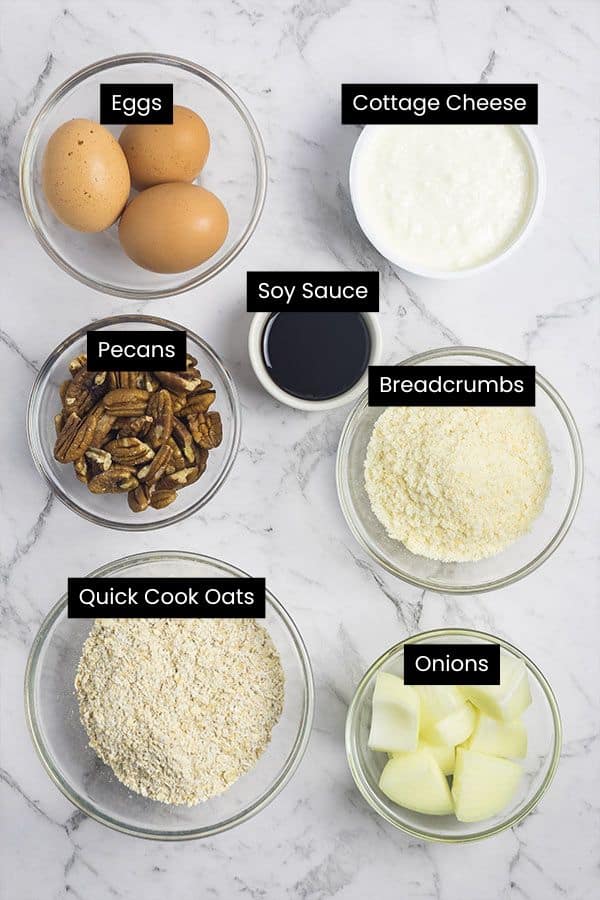 - Place the eggs, pecans, onion, soy sauce and cottage cheese into a food processor and process until smooth.3 eggs, ½ cup pecan nuts, 1 onion, 1 tbs soy sauce, 1 cup cottage cheese, 1 tsp salt